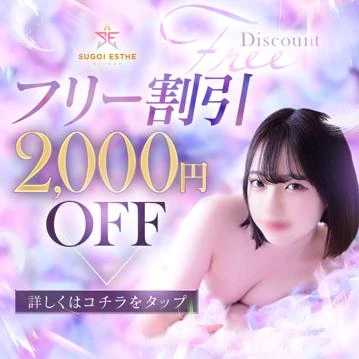 フリー割今からすぐ利用したい方、必見!!「フリー割」100分 28,600円 → 26,400円120分 35,200円 → 33,000円140分 41,800円 → 39,600円受付時に「フリー割」とお伝えください!※ご利用2回目以降のお客様に限ります※満足度向上アンケートにご協力ください※指名はできません※交通費が掛かる場合があります※特別指名料が掛かる場合があります
